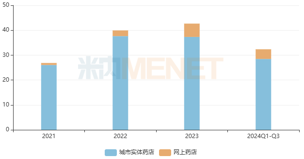 米内网数据显示,中成药祛暑剂在2024年Q1-Q3中国零售药店(城市实体药店和网上药店)终端销售规模超过30亿元,是消化系统中成药TOP2亚类,而城市实体药店是主要销售渠道。
