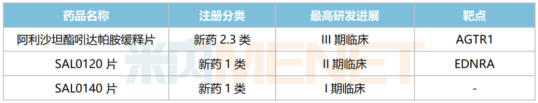 据不完全统计,目前信立泰在国内还有3款新药(不含已上市品种)处于I期临床及以上的阶段,其中复方制剂阿利沙坦酯吲达帕胺缓释片正在开展原发性高血压适应症的III期临床;1类新药SAL0120片步入II期临床,适应症包括轻/中度原发性高血压、慢性肾脏病。