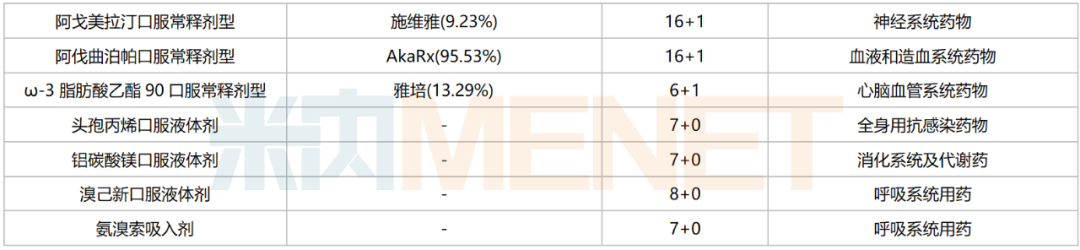 根据今年5月份流传的《进一步优化药品集采政策的方案(征求意见稿)》第二稿,市场规模小(销售金额不大)的品种可能不会被纳入国采。144个品种中,31个品种销售额尚未突破1亿元(占比超过21%),多为近年来新上市品种,包括伐地那非、ω-3脂肪酸乙酯90、替米沙坦氨氯地平等口服常释剂型,美金刚、福多司坦、丙戊酸钠、恩替卡韦等口服溶液剂等。