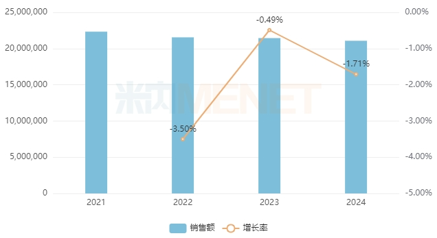 恶心和呕吐属于消化系统及代谢领域范畴。米内网数据显示,近年来中国三大终端六大市场消化系统及代谢药物(不含中成药)销售额持续下滑,但始终维持在2100亿元以上。