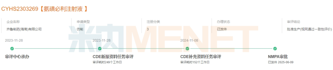 齐鲁制药的氨磺必利注射液于2023年11月报产,并于近日顺利获批生产,拿下国内首仿+首家过评;此外,恩华药业、南京正科医药、南京恩泰医药、山西阳和医药、湖北多瑞药业等7家企业的产品以新注册分类申报,目前还在审或正在开展临床试验。