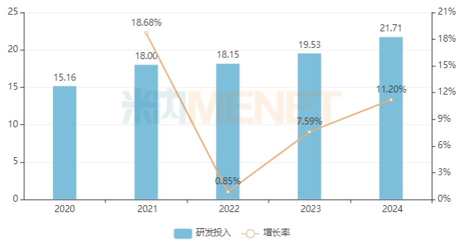 近年来,科伦药业坚持“三发驱动,创新增长”的发展战略,不断加大研发投入支持创新发展。2023年公司研发投入19.5亿元,同比增长7.59%;2024年进一步增长至21.71亿元,同比增长11.2%。