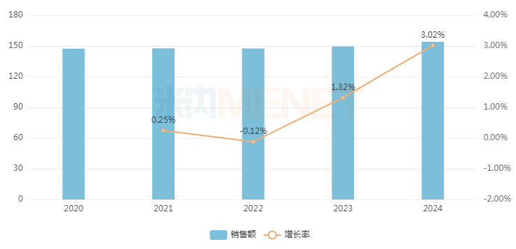 在重点省市公立医院终端,江苏省2020-2024年销售规模均在145亿元以上,2024年拿下近五年的历史新高超154亿元,同比增长3.02%;本次接续集采拟纳入44个品种,2024年在江苏省公立医院终端的合计销售额接近4亿元。