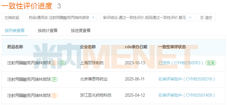 亮丙瑞林(缓释)微球注射剂一致性评价申报情况