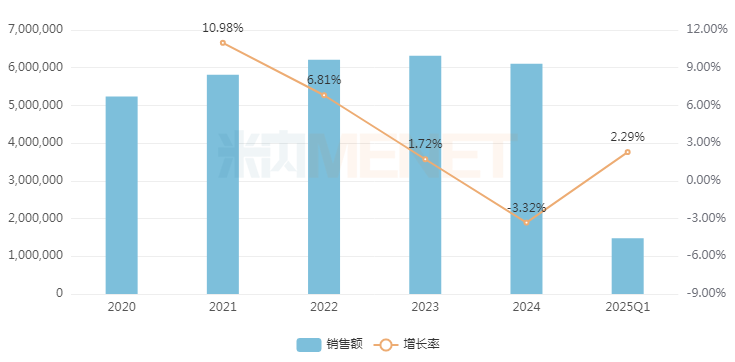 在中国城市实体药店终端,消化系统疾病用药(化+中+生)近年来销售额整体保持稳步增长态势,除2024年稍有下滑,2025年一季度重现回升至近150亿元,同比增长2.29%。