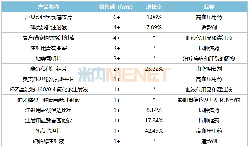 注:米内网《中国公立医疗机构药品终端竞争格局》,统计范围是:中国城市公立医院、县级公立医院、城市社区中心以及乡镇卫生院,不含民营医院、私人诊所、村卫生室;上述销售额以产品在终端的平均零售价计算。数据统计截至6月26日,欢迎指正!