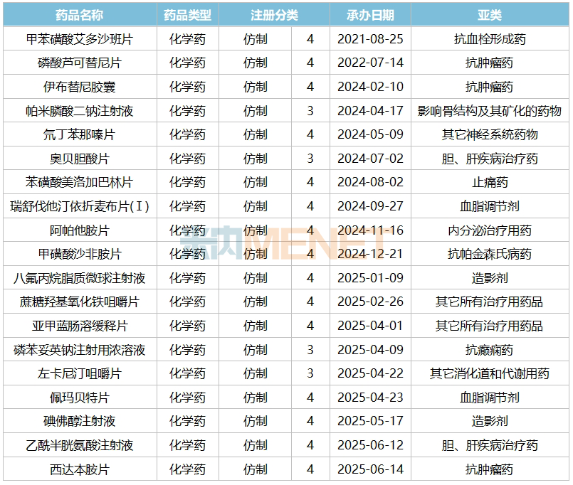来源:米内网中国申报进度(MED)数据库