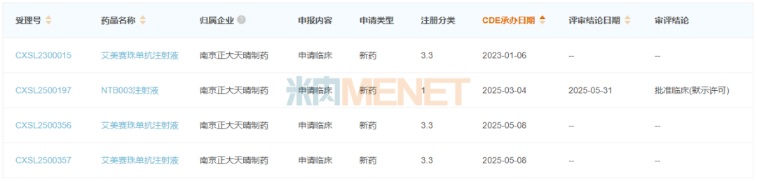 2023年1月,南京正大天晴制药首家提交了艾美赛珠单抗注射液3.3类新药临床申请,随后在2025年5月再提交了两个受理号的临床申请。艾美赛珠单抗注射液是罗氏的重磅止血药,2024年全球销售额超过45亿瑞士法郎(按即时汇率换算约56亿美元),在中国公立医疗机构终端止血药市场为TOP11产品。