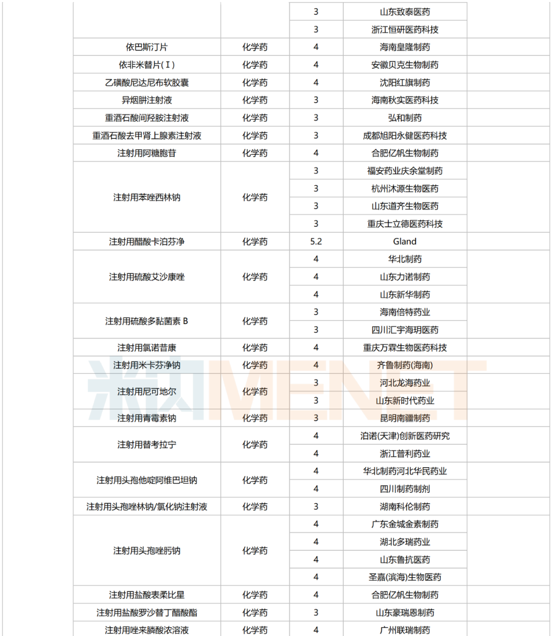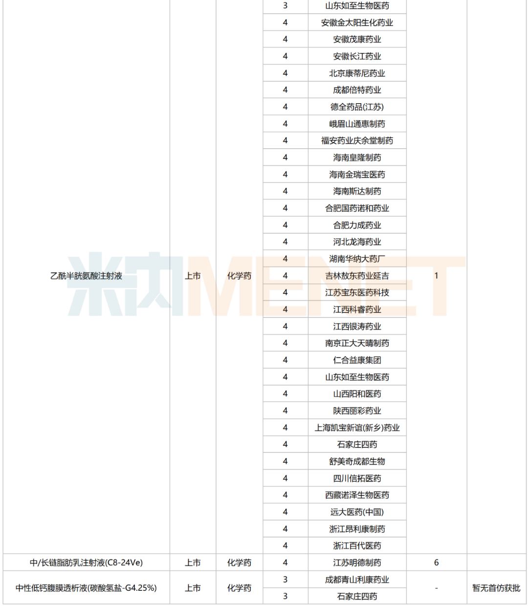 2025年6月,213个品种按新分类仿制申请获CDE承办,其中49个品种在中国境内暂无仿制药获批。乙酰半胱氨酸注射液申报企业最多,有32家。石家庄四药申报品种数最多,有8个。