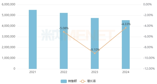 米内网数据显示,2022-2024年中国城市公立医院、县级公立医院、城市社区中心以及乡镇卫生院(简称中国公立医疗机构)终端高血压化药销售额持续下滑,2024年约达450亿元,为近八年来最低(2017-2024年)。