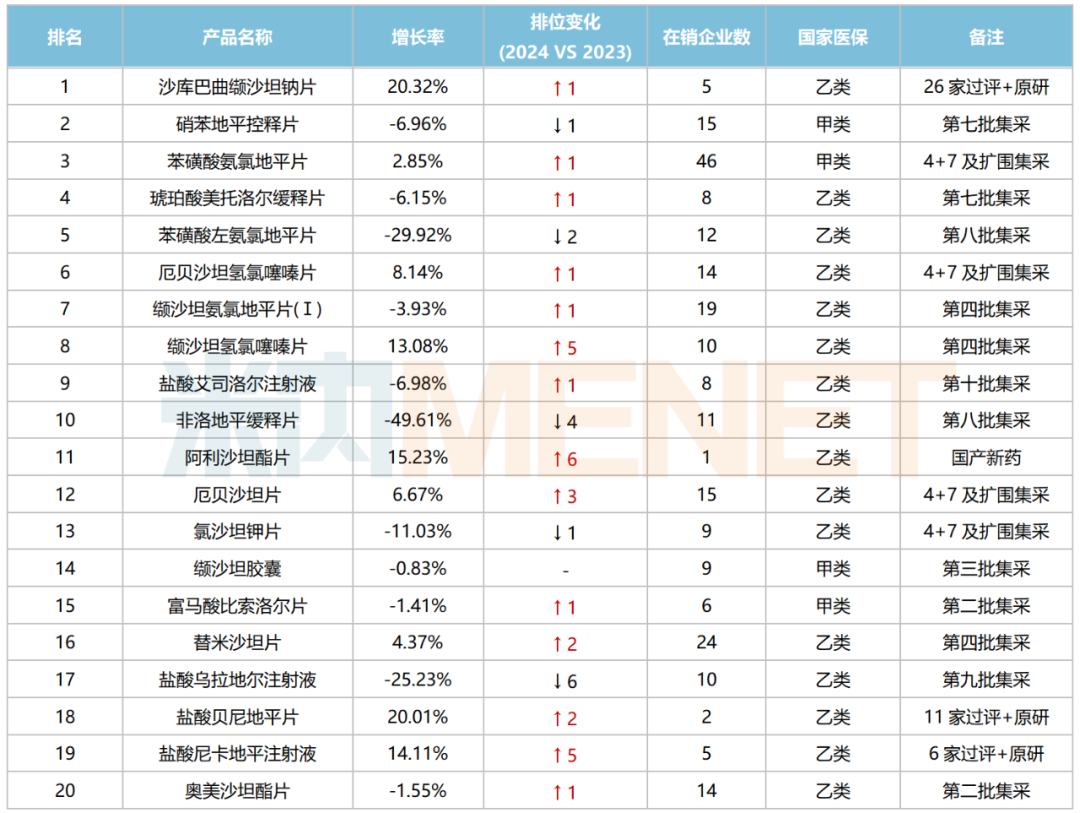来源:米内网原创 2025-07-11 09:24高血压用药