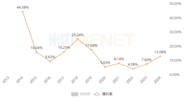 缬沙坦氢氯噻嗪片为唯一例外品种,该产品已被纳入第四批集采,于2021年5月开始陆续落地执行,但在中国公立医疗机构终端的销售额并未因此大幅下滑,且至今已实现“11连涨”(2014年-2024年)。