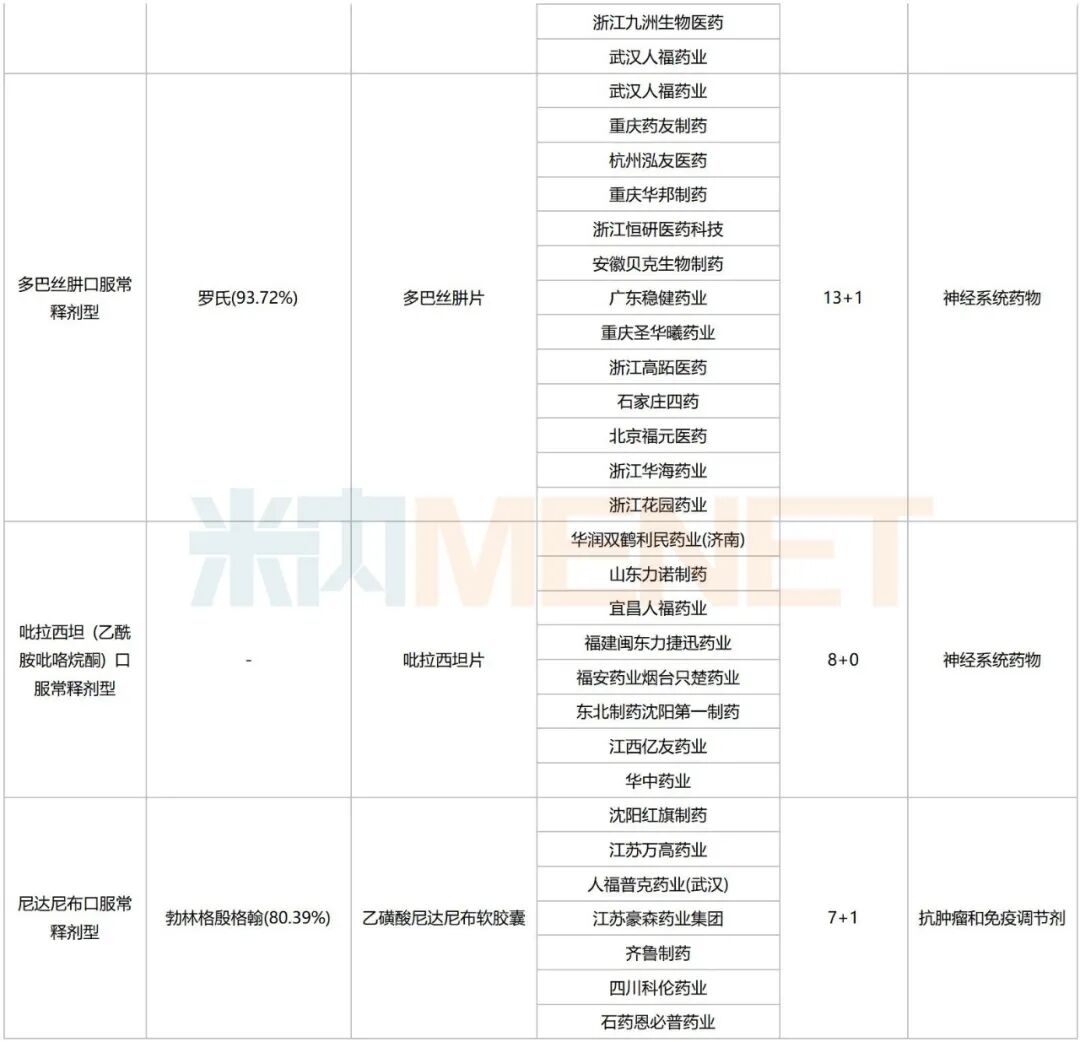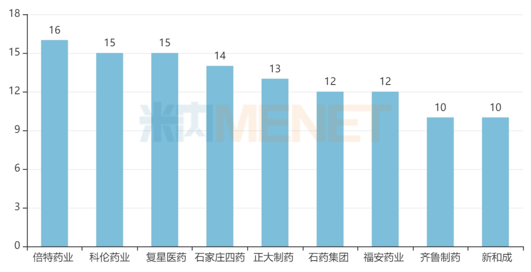 从企业过评情况看,倍特药业、科伦药业、复星医药、石家庄四药、正大制药、福安药业、石药集团、齐鲁制药、新和成将为“主力军”,目前分别有16、15、15、14、13、12、12、10、10个过评品种在列。