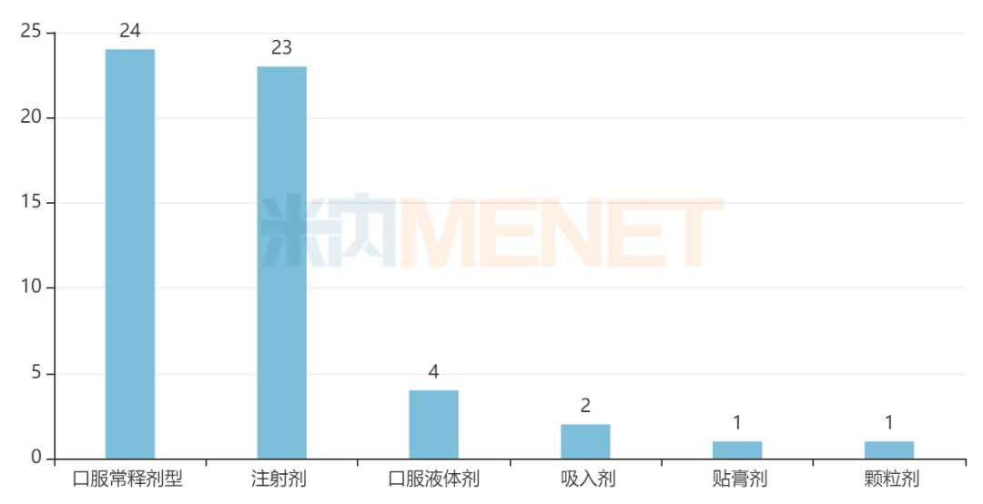 倍特药业以16个品种领跑,包括9个注射剂、6个口服常释剂型及1个吸入剂,其中有12个品种为2024年后新获批品种,包括达格列净片、罗沙司他胶囊等临床畅销品种。