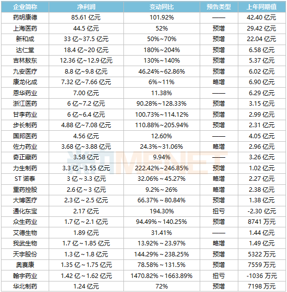达仁堂、步长、甘李28家翻倍,9家扭亏为盈