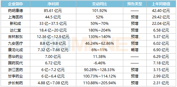 从增速来看,达仁堂、步长制药、甘李药业、沃华医药等28家翻倍,9家扭亏为盈;上海医药、华北制药、金石亚药等增速超过50%。