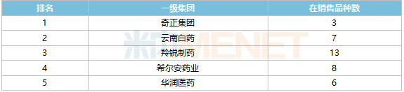 从集团TOP20来看,奇正集团、云南白药、羚锐制药位居前三,希尔安药业有双位数增速,是TOP20中增速最快的集团。