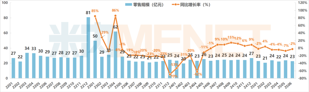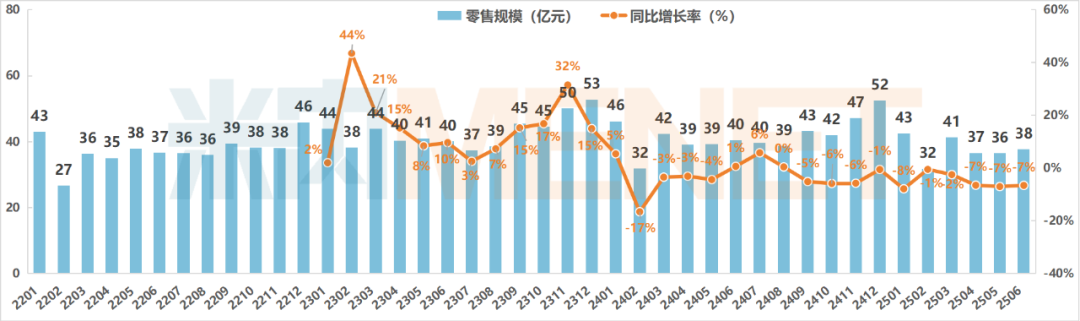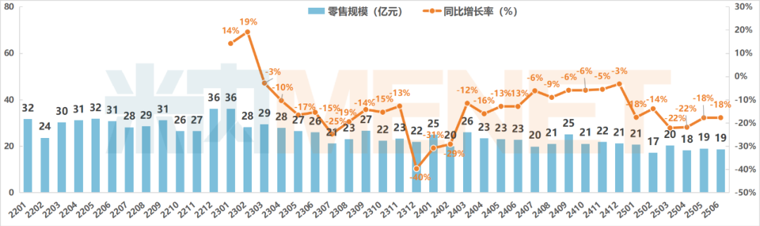 2025年6月,中国实体药店保健品零售规模为19亿元,规模与上月持平,与去年同期相比,减少了4个亿。保健品市场似乎有止跌之势。