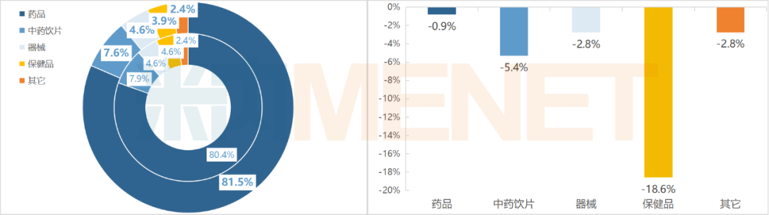 品类市场分析:药品占比微升显刚需韧性,非药品类普遍下滑呈分化态势