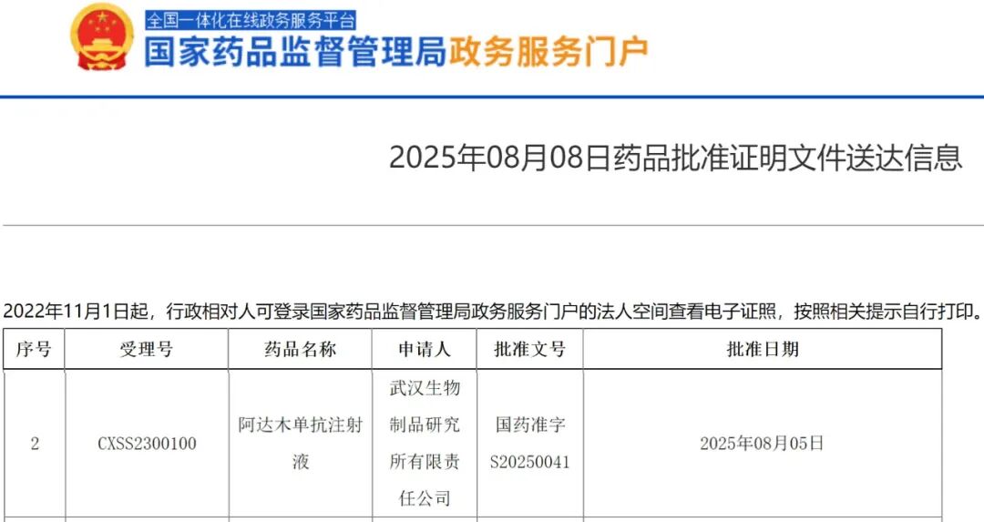 编辑说:日前,国家药监局官网显示,武汉生物制品研究所申报的3.3类新药阿达木单抗注射液获批上市,为国内获批的第8款阿达木单抗生物类似药。米内网数据显示,2024年中国三大终端六大市场(统计范围详见本文末)阿达木单抗注射液的销售额超过24亿元。