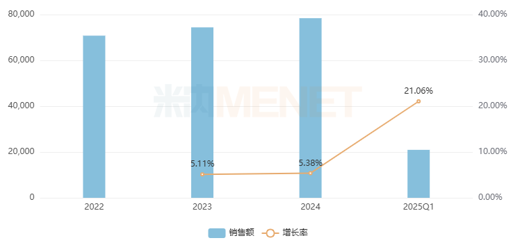 东阿阿胶的复方阿胶浆是补血用药,近几年在重点省份实体药店的销售额一直稳定增长,2024年涨至14亿元以上,2025年Q1大涨11.13%,全年有望再创新高。