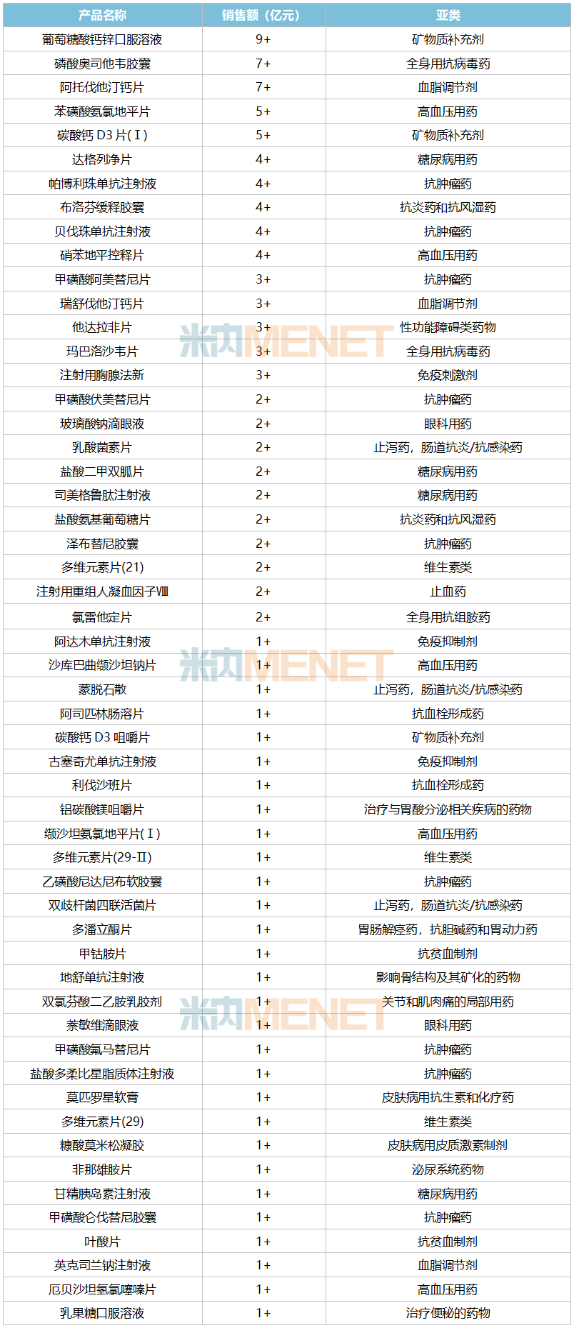 还有8个非独家西药增长率超过20%,包括了地舒单抗注射液(+85.42%)、盐酸氨基葡萄糖片(+54.53%)、玻璃酸钠滴眼液(+35.77%)、注射用重组人凝血因子Ⅷ(+35.40%)、盐酸多柔比星脂质体注射液(+31.23%)、蒙脱石散(+29.80%)、糠酸莫米松凝胶(+28.27%)、乙磺酸尼达尼布软胶囊(+25.98%)。