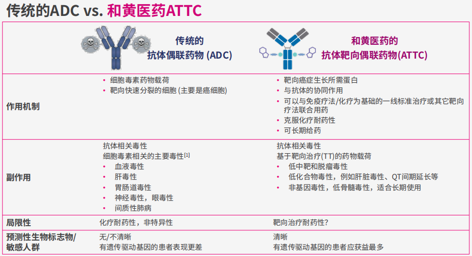 与传统的ADC相比,ATTC平台通过“抗体 靶向药物”偶联替代传统“抗体 细胞毒素”模式,用具有明确作用机制的靶向小分子取代了传统的细胞毒素作为有效载荷,可显著降低血液毒性、肝毒性等副作用,克服化疗耐药性,实现长期安全给药,优化药代动力学特征解决难成药靶点困境等。