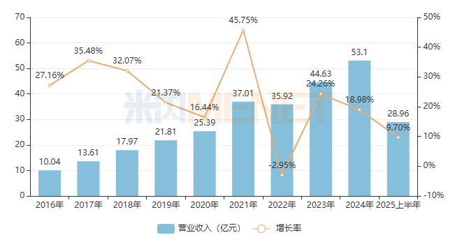 肝病用药是片仔癀的拳头业务,近十年来除了2022年下滑了2.95%,其余年份均为正增长,在整体环境处于“高压”的情况下,依然展现出了十足活力。2025上半年,片仔癀的肝病用药实现收入28.96亿元,同比增长9.70%,毛利率为61.50%。