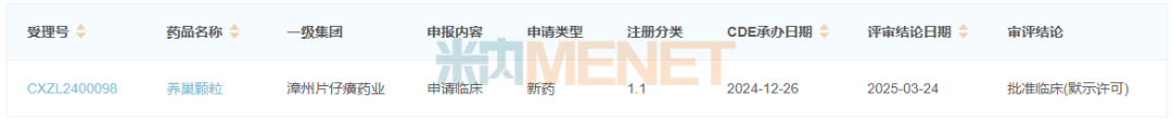 2025年3月,片仔癀的中药1.1类新药养巢颗粒获批临床,即将开展针对卵巢储备功能减退肾虚证的临床试验。