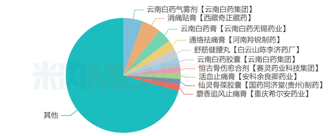 米内网数据显示,近年来在中国三大终端六大市场(统计范围详见本文末)骨骼肌肉系统疾病中成药TOP10品牌中,云南白药的云南白药气雾剂、云南白药膏、云南白药胶囊均上榜,为上榜品牌数最多的企业。