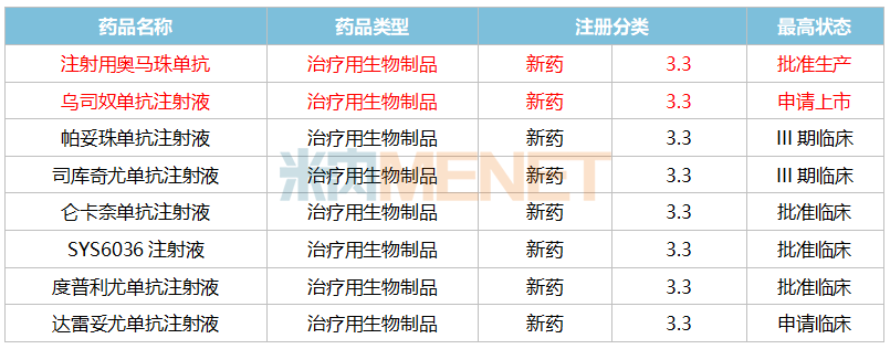 乌司奴单抗注射液是个10亿级别产品,石药集团在2024年11月提交3.3类新药上市申请,米内网预测有望在今年年底迎来好消息。