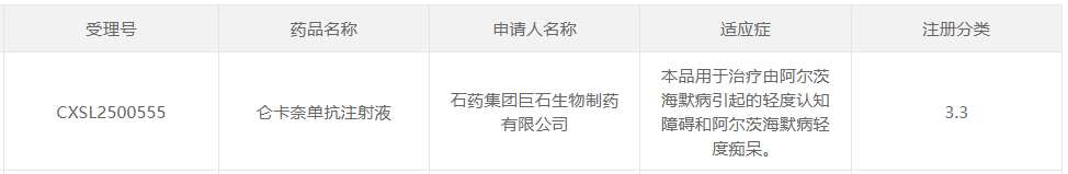 仑卡奈单抗是一种重组抗人b淀粉样蛋白单克隆抗体,适用于治疗由阿尔茨海默病引起的轻度认知障碍和阿尔茨海默病轻度痴呆。米内网数据显示,卫材按进口1类新药申报上市,并在2024年1月获批进口,石药集团是首家提交3.3类新药临床申请并获批的国内药企。