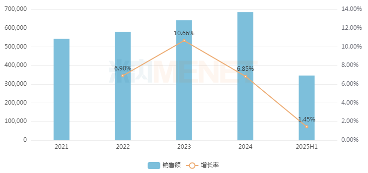 在中国三大终端六大市场(统计范围详见本文末),皮肤科中成药近年来销售额稳步攀升,2022-2025上半年分别同比增长6.9%、10.66%、6.85%和1.45%;2024年拿下创新高的接近70亿元,从渠道格局上看,城市公立医院一马当先,市场份额约占38%。