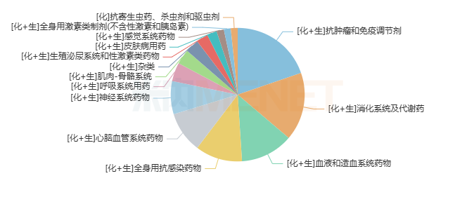 从化药及生物药大类分布情况看,抗肿瘤和免疫调节剂以超20%的占比居于首位,2025上半年销售额增长率为7.44%,消化系统及代谢药以超16%的占比紧随其后,销售额有0.6%的增长,血液和造血系统药物、全身用抗感染药物、心脑血管系统药物占比均超过10%,3个大类销售额均有下滑。