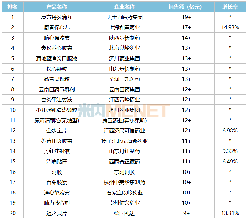 2025上半年在中国三大终端六大市场,中成药TOP20品牌合揽超过250亿元。天士力医药集团的复方丹参滴丸以19.3亿元“封王”,上海和黄药业的麝香保心丸以17.1亿元紧追其后,陕西步长制药的脑心通胶囊以14.9亿元排在TOP3。