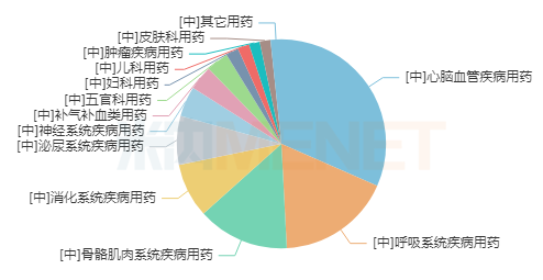 从中成药大类格局上看,心脑血管疾病用药市场份额超过30%,稳居首位;呼吸系统疾病用药、骨骼肌肉系统疾病用药占比分别超18%和14%,排名第二和第三。