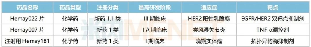 除了已获批上市的莫米司特片,和美药业的EGFR/HER2双靶点抑制剂Hemay022片进展最快,目前正在开展III期联合疗法试验,用于治疗乳腺癌。