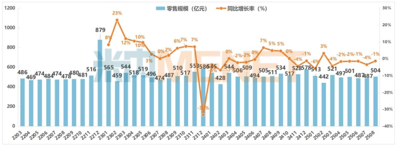 一文读懂 | 2025年8月实体药店(药品+非药)零售规模为504亿元,市场止跌回升保持震荡调整