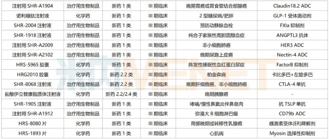 米内网数据显示,含合作引进的新药在内,目前恒瑞医药在国内有200余款新药(不含已有批文、撤回或不批准品种)在国内处于申请临床及以上阶段,涵盖小分子化药、单/双抗体、抗体偶联药物(ADC)、小核酸药物、核药、多特异性抗体、双抗ADC等药物类型。