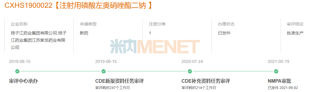 编辑说:近日,石家庄四药提交了注射用磷酸左奥硝唑酯二钠的4类仿制上市申请获得CDE承办。该产品是扬子江药业在2021年获批的化药1类新药,随后进入了国家医保谈判目录,2023年在中国公立医疗机构终端销售额达到了2亿元。