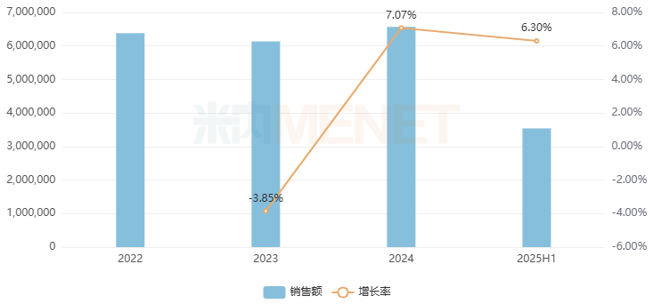 糖尿病用药(化 生)在近年中国三大终端六大市场(统计范围详见本文末)均超过600亿元销售规模,2025年上半年同比增长6.30%,卡格列净片是SGLT2抑制剂化药TOP4产品。