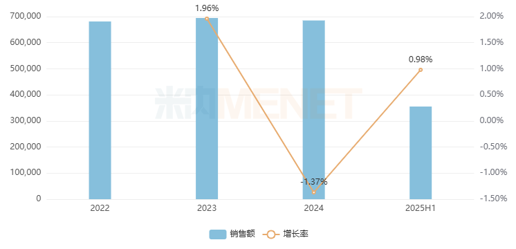 在中国三大终端六大市场(统计范围见文末),中成药的销售规模在2023-2024年保持在4100亿元水平。天士力医药集团在2019-2025上半年一直是中成药TOP1企业,销售峰值在2023年达到了69亿元,2025上半年止跌回升0.98%,潜力依然可期。