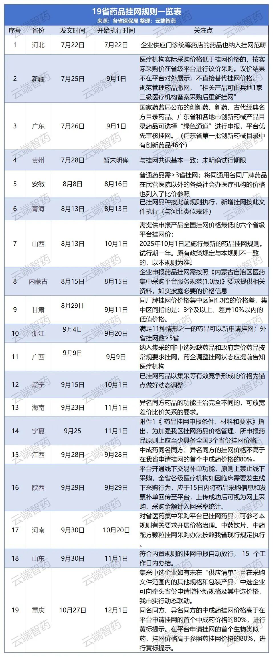 目前,全有已有21省发布正式药品挂网规则文件:河北、新疆、广东、贵州、安徽、青海、山西、内蒙古、甘肃、浙江、广西、辽宁、海南、宁夏、江西、陕西、河南、山东、重庆、上海、福建挂网规则已经成文。其余各省均发出征求意见稿并完成了意见征稿。