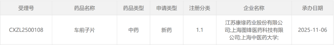 车前子片是康缘药业与上海中医药大学联合开发的一款中药1.1类创新药,为公司今年以来第2款申报IND的中药1.1类创新药。
