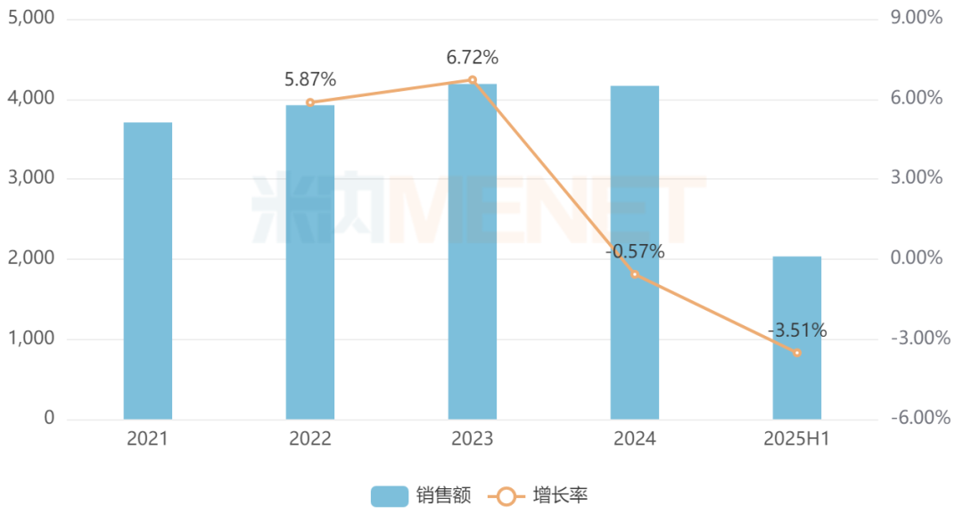 米内网数据显示,2023-2024年中国三大终端六大市场中成药销售额均超过4100亿元,2025年上半年超过2000亿元。在2025年上半年中成药TOP20集团中,华润医药、国药集团、步长制药稳居前三,康缘药业亦榜上有名。