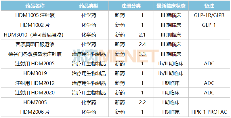 在糖尿病用药领域,化药1类新药HDM1005注射液是一款GLP-1R/GIPR双靶点长效多肽类激动剂,该新药超重或肥胖人群的体重管理III期临床试验已于今年10月完成首例受试者入组,而该新药的2型糖尿病II期临床试验已于今年7月完成了全部受试者入组。