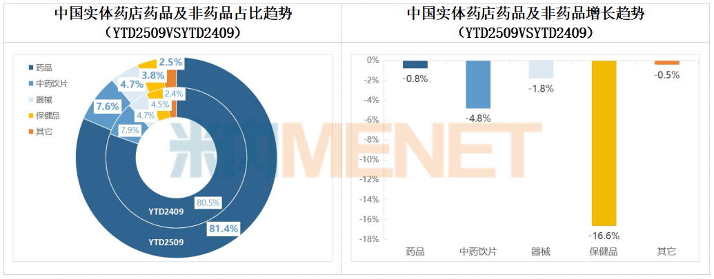 一文读懂 | 2025年前三季实体药店零售规模(药品+非药)为4490亿元,中成药9月环比增速超过化药