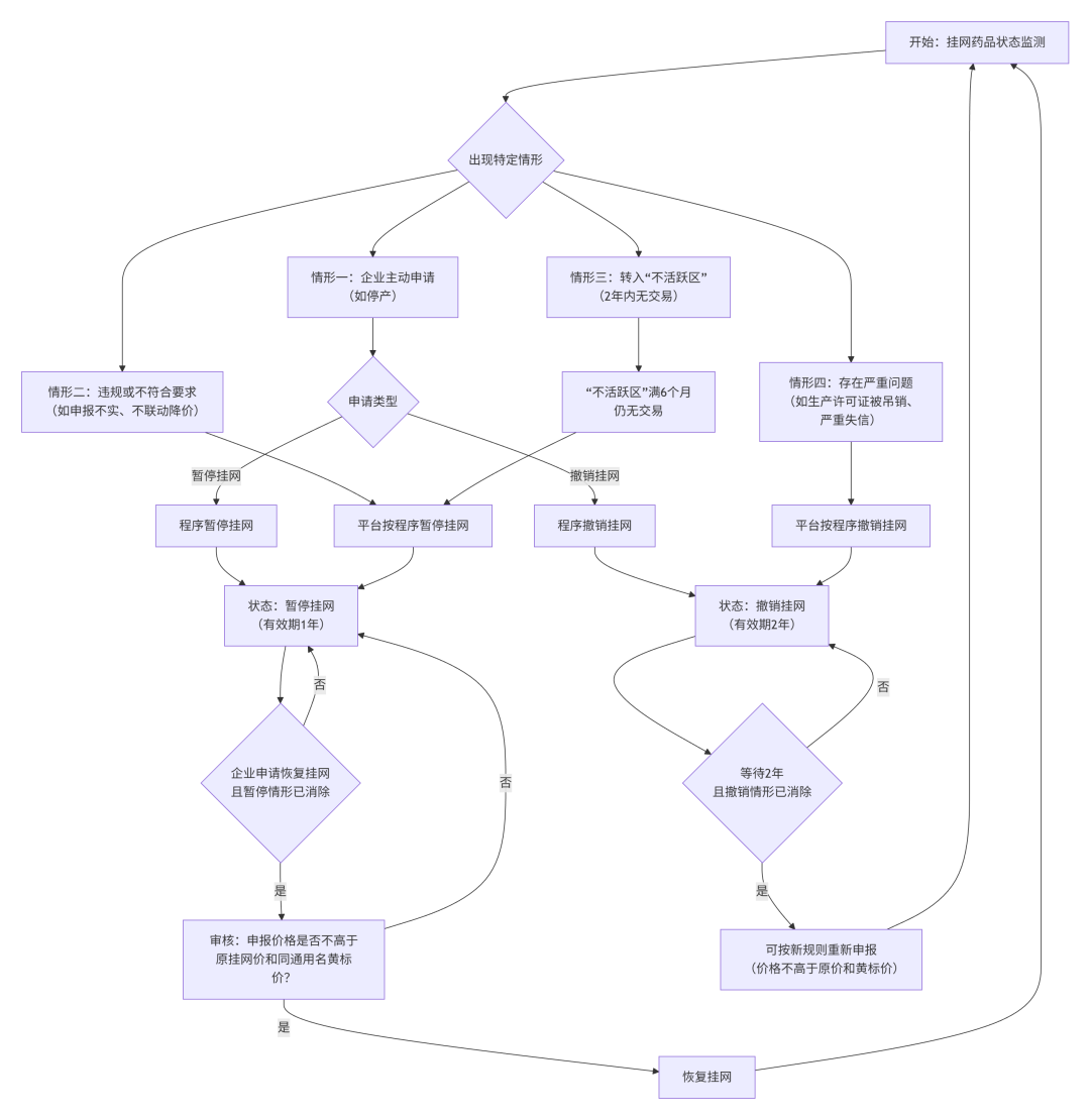 此外,对暂停及撤销挂网情况,也做出了明确的程序: