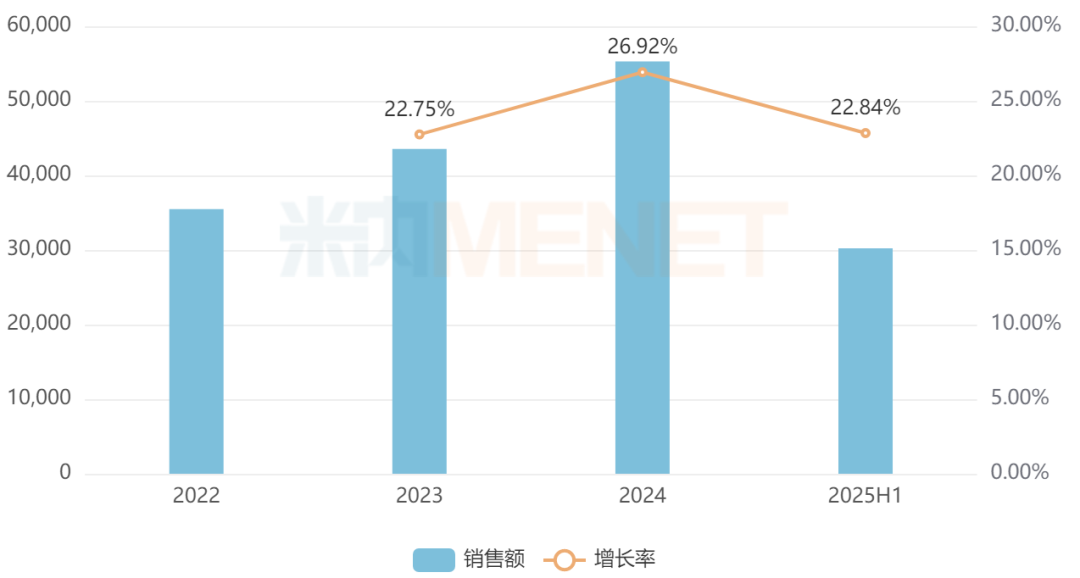 地奥九泓制药的脂必泰胶囊为国家医保甲类品种,具有消痰化瘀、健脾和胃的功效,主治痰瘀互结、气血不利所致的高脂血症。米内网数据显示,该药近年来在中国三大终端六大市场的销售额均以两位数的增速增长,2025年上半年超过3亿元,同比增长约23%。