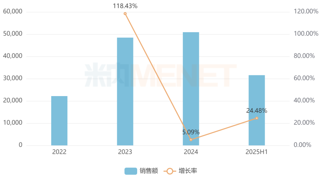 海博麦布片属于胆固醇吸收抑制剂,是海正药业历时十多年研发的一款国产1类新药,最早于2021年6月获批上市,同年通过谈判纳入国家医保乙类目录,近年来在中国三大终端六大市场快速放量,2024年其销售额超过5亿元,2025年上半年以约24%的增速继续增长,在血脂调节剂化药品牌排名中,由2022年的第18位提升至2025年上半年的第7位。